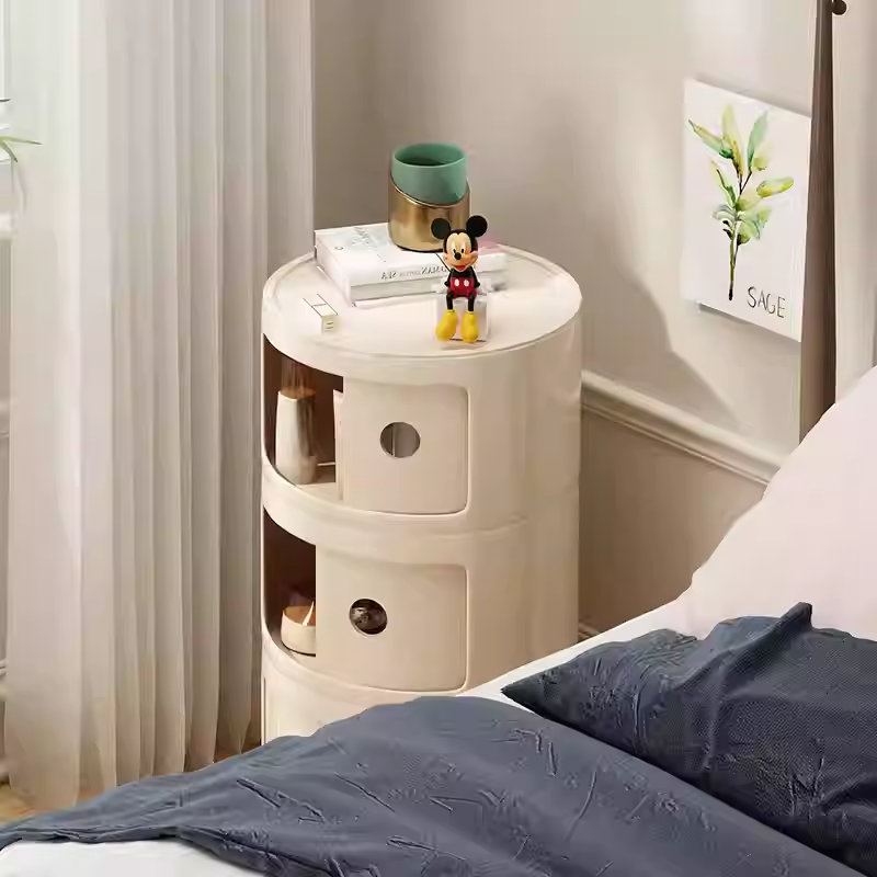 Cream Style Bedside Cabinet | INS Narrow Edge Round Storage Side Cabinet | Creative Macaron Small Bedroom Storage