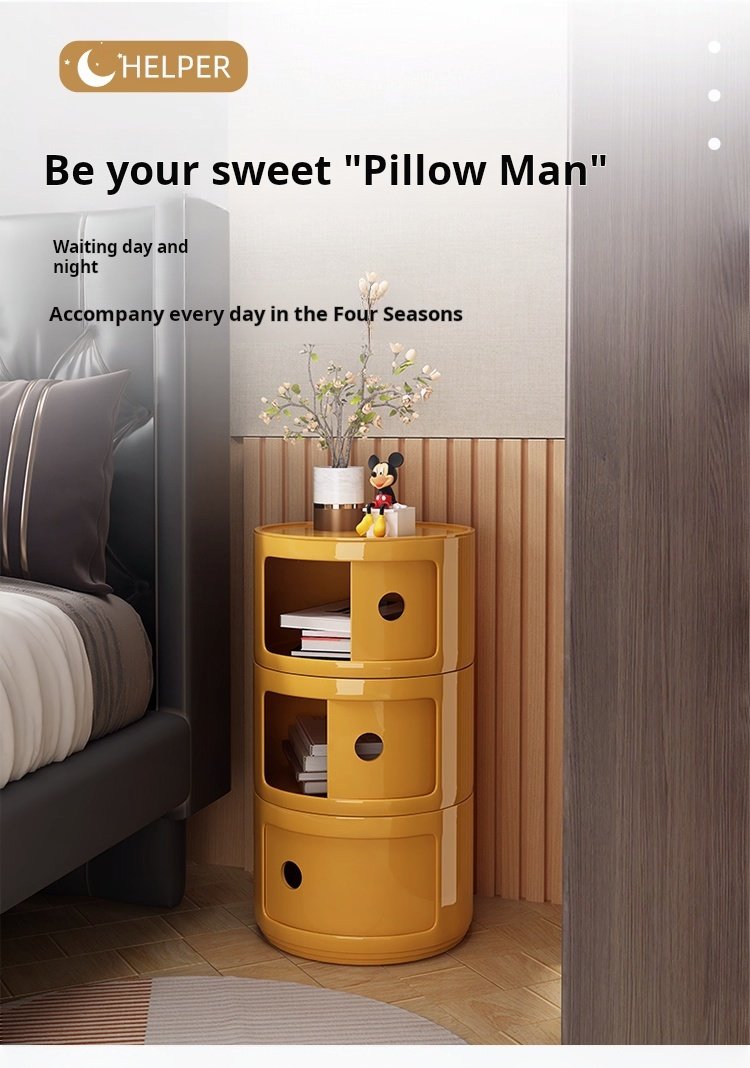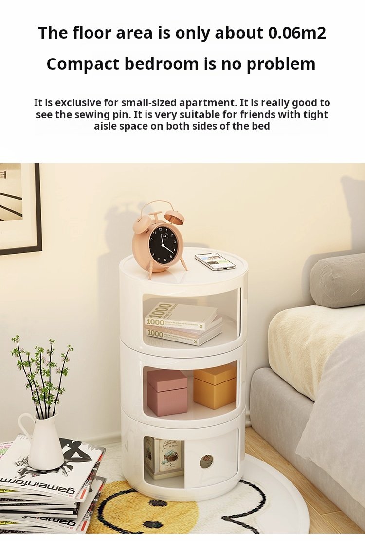 Cream Style Bedside Cabinet | INS Narrow Edge Round Storage Side Cabinet | Creative Macaron Small Bedroom Storage