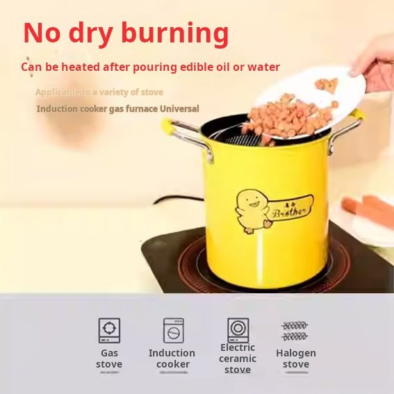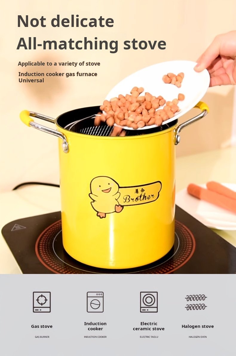 Zha Zha Hu Deep Fryer – The Ultimate Home Deep Fryer with Low Smoke Filter, Made of High-Quality Iron with No Coating, Compatible with Induction Cookers and Gas Stoves.