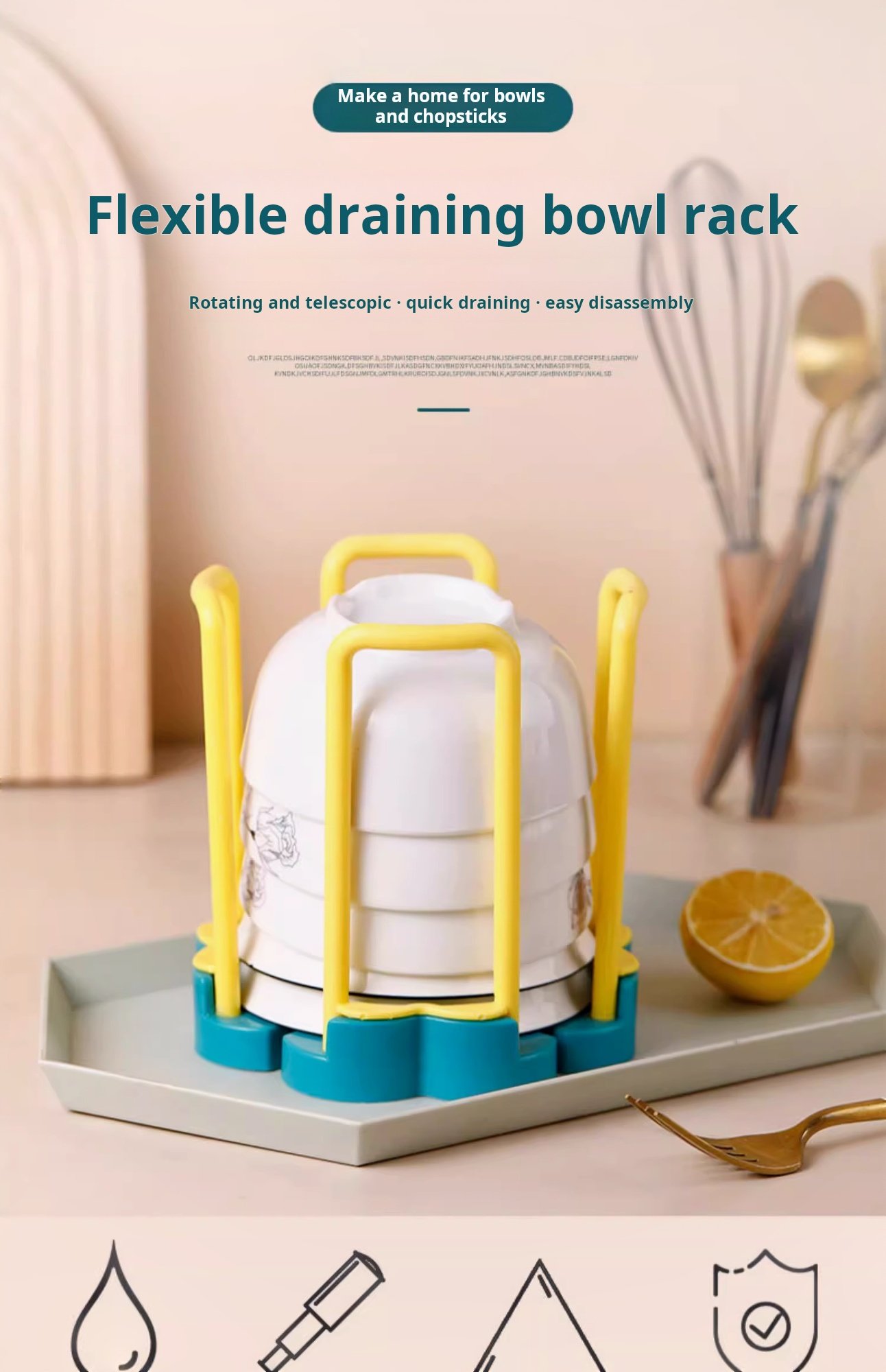 Home Use Retractable Bowl Rack Kitchen Cupboard Bowl Plate Bowl Basin Drain Rack Tabletop Plate Rice Bowl Storage Shelf (PACK OF 4)