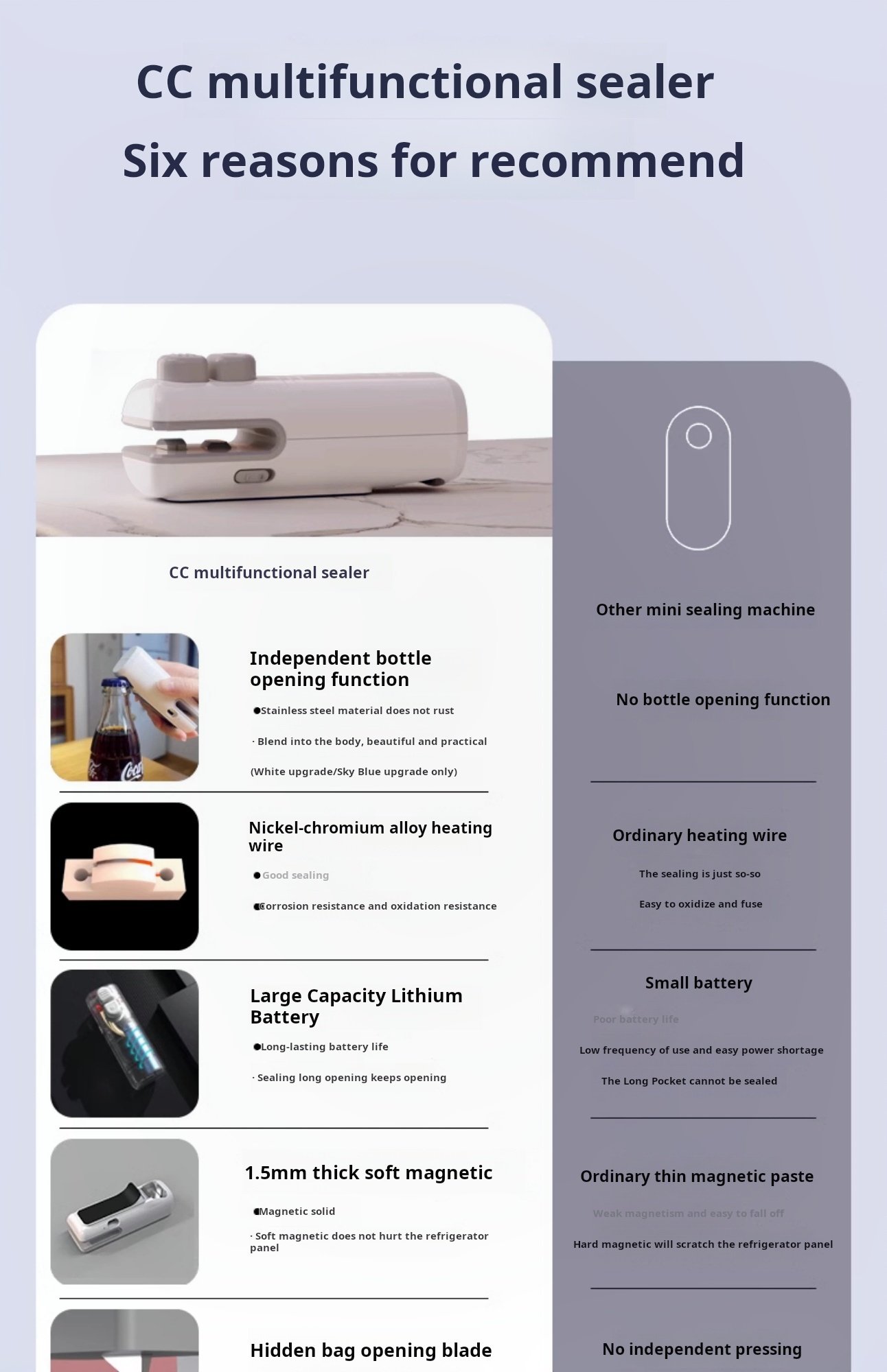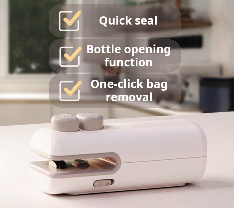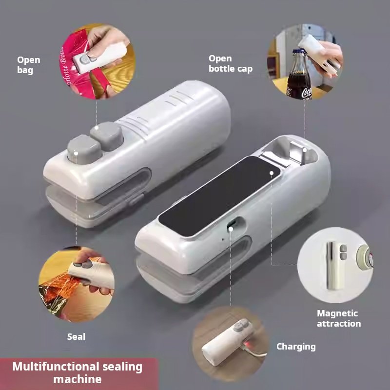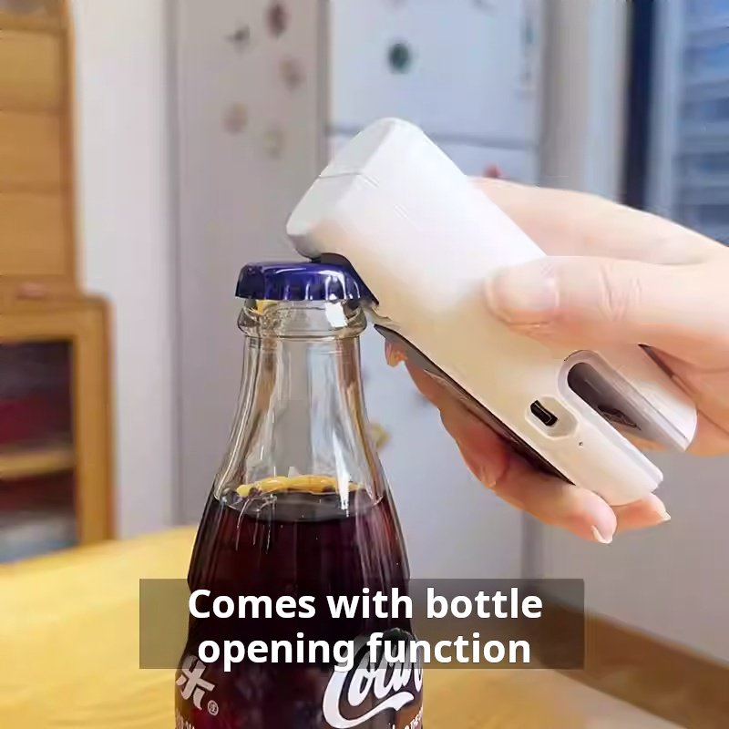 Sealing machine for home use, rechargeable, small, mini, portable, snack bag sealer, bottle opener, plastic sealer (PACK OF 2)