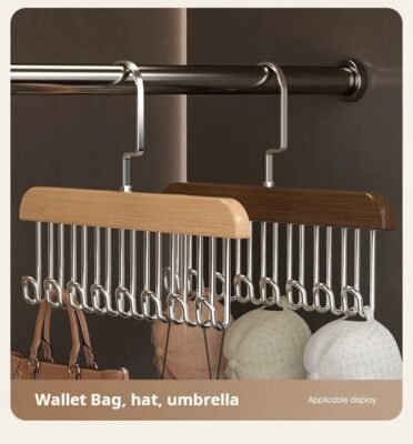 19 reviews for Wooden Strap Hanger Multifunctional Underwear Vest Storage Tool Home Solid Wood Hook Wave Clothes Drying Rack (PACK OF 20)